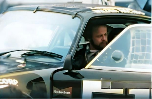 Wilder sits in his race car, a sleek black Porsche 911 Turbo, number fifty-one, just before competing in the 1984 Miami Grand Prix.